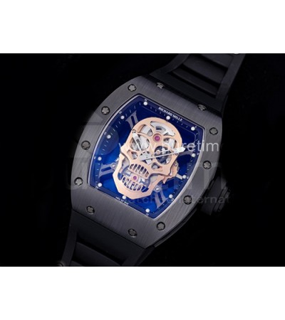 | Movement | Japanese SEIKO NH05A 21J automatic movement at 21600vph decorated to genuine richard mille manual winding tourbillon skull movement |