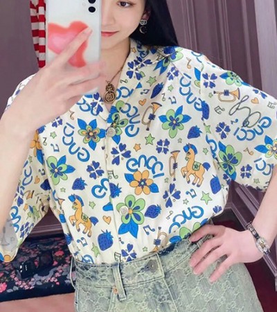 [GUCCI] 구찌 22SS 여자 봄여름 그래픽 카라 남방셔츠 WM406,BR,홍콩명품,무브타임,여성,여자명품쇼핑몰 > 여성몰