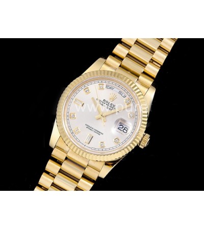 [ROLEX] 로렉스 데이데이트 36mm 옐로우골드 다이아몬드 마크 실버 다이얼, 홍콩명품시계,롤렉스,남자명품시계,메탈시계,무브타임 > 시계