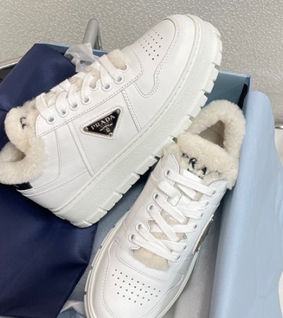 [홍콩명품,PRADA] 프라다 23SS 여성 레더 시어링 삼각로고 스니커즈 (화이트) 1E947M, SE984, SMS, 무브타임사이트,인터넷명품쇼핑몰,남자명품,슈즈,신발 > 여성몰