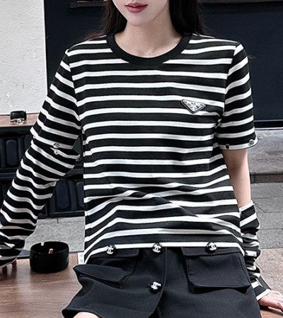 [홍콩명품,PRADA] 프라다 23SS 삼각로고 스트라이프 긴팔 티셔츠, BM5445, TBG, 온라인명품쇼핑몰,의류,무브타임사이트,인터넷쇼핑몰,해외직구 > 여성몰