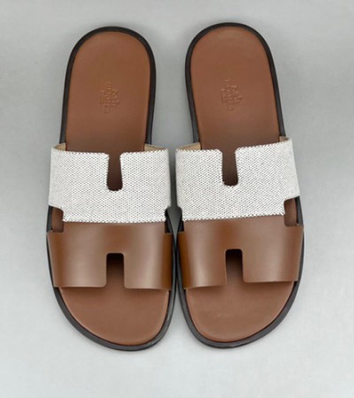• [홍콩명품.Hermes] 에르메스 23SS  남성 슬리퍼 이즈미르 (브라운-화이트), SE1379, S3, 무브타임사이트,인터넷명품쇼핑몰,남자명품,슈즈,신발