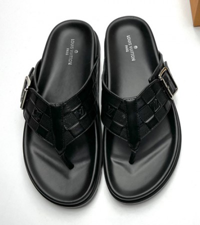 • [홍콩명품.LOUIS VUITTON] 루이비통 23SS 다미에 레더 슬리퍼 (블랙), SE1525, PMD, 무브타임사이트,인터넷명품쇼핑몰,남자명품,슈즈,신발