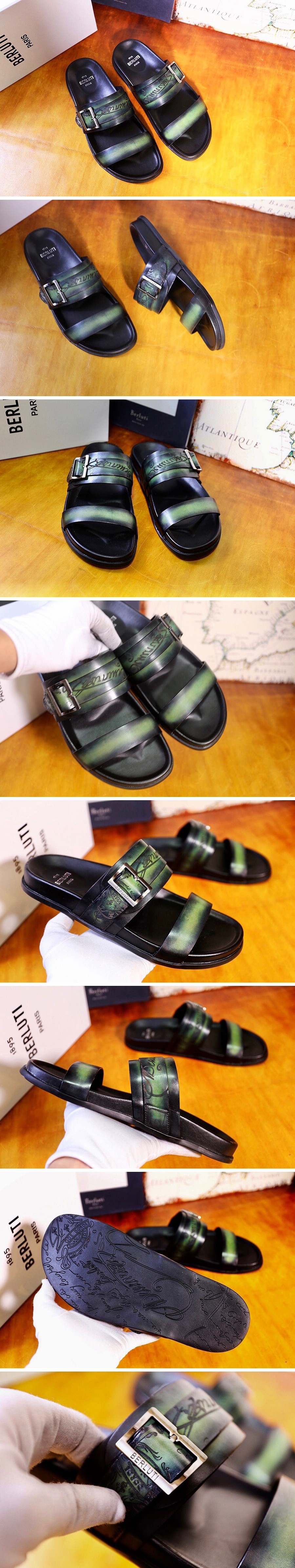 • [홍콩명품.BERLUTI] 벨루티 23SS 남성 스크리토 레더 슬리퍼 (그린), SE1685, BLB, 무브타임사이트,인터넷명품쇼핑몰,남자명품,슈즈,신발