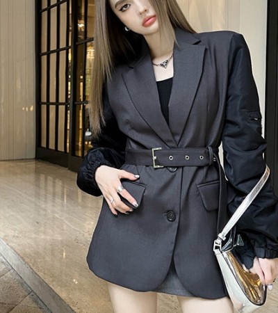 [홍콩명품,PRADA] 프라다 23SS 로고 벨티드 정장 자켓 (그레이), BM9225, TBG, 온라인명품쇼핑몰,남자명품의류,인터넷쇼핑몰,해외직구 > 여성몰