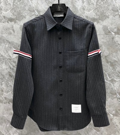 • [홍콩명품.THOME BROWNE] 톰브라운 23SS 로고 3선 스트라이프 울 남방 셔츠 (다크그레이), BM9380, TB1, 온라인명품쇼핑몰,남자명품의류,인터넷쇼핑몰,해외직구
