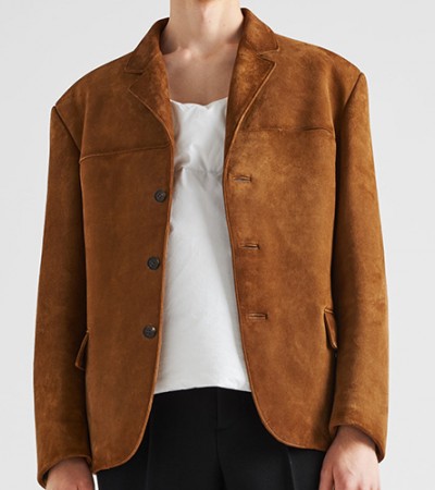 • [홍콩명품,PRADA] 프라다 23SS 삼각로고 가죽 레더 정장 자켓 (브라운), BM9514, TOM, 온라인명품쇼핑몰,남자명품의류,인터넷쇼핑몰,해외직구
