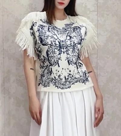 [홍콩명품,Christian Dior] 디올 23SS 로고 그래픽 반팔 니트 스웨터 (화이트), BM10603, TBG, 홍콩명품의류,구매대행,온라인명품 > 여성몰