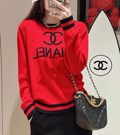 • [홍콩명품.CHANEL] 샤넬 24SS 로고 여성 니트 스웨터 (레드), BM11639, TBG, 홍콩명품의류,구매대행,온라인명품