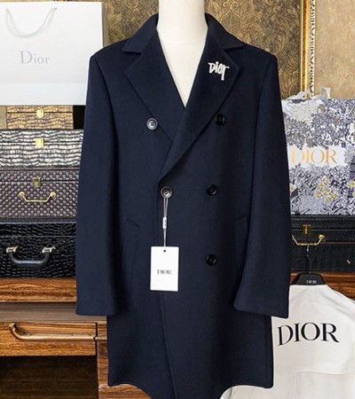 • [홍콩명품,Christian Dior] 디올 24SS 로고 보로치 캐시미어 코트 (네이비), BM11833, S1, 홍콩명품의류,구매대행,온라인명품