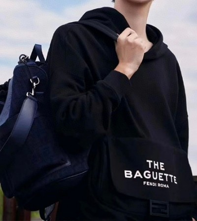 • [홍콩명품,FENDI] 펜디 24SS 로고 바게트 포켓 후드 티셔츠 (블랙), BM11840, JL, 홍콩명품의류,구매대행,온라인명품