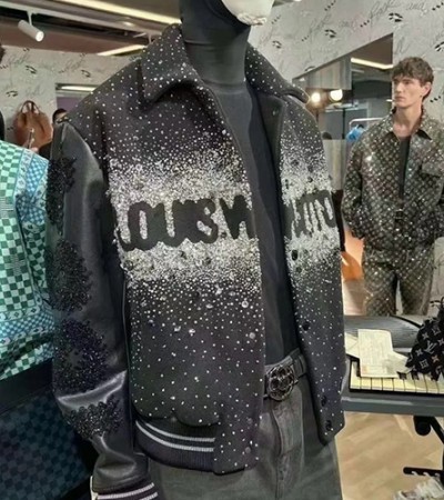 [홍콩명품.LOUIS VUITTON] 루이비통 24SS 로고 스터드 장식 가죽 바시티 자켓 (블랙), BM11851, JL, 홍콩명품의류,구매대행,온라인명품 > 남자의류