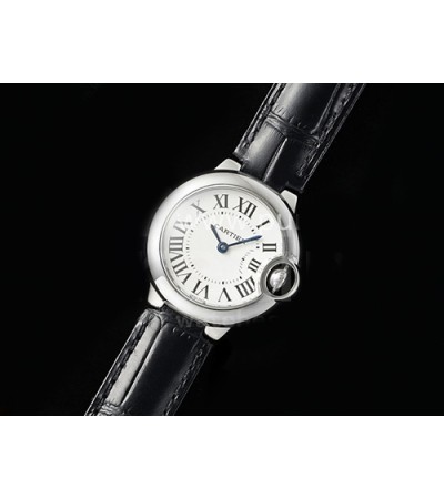 [홍콩명품시계.CARTIER] 까르띠에 발롱블루 여성용 28mm 화이트 다이얼, 쿼츠버전, 블랙 가죽줄 > 여성몰