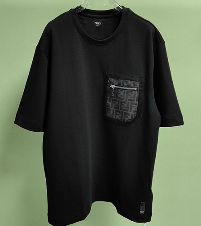 [홍콩명품,FENDI] 펜디 24SS 로고 FF지퍼 포켓 반팔 티셔츠 (블랙), BM11956, JL, 홍콩명품의류,구매대행,온라인명품 > 남자의류