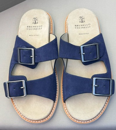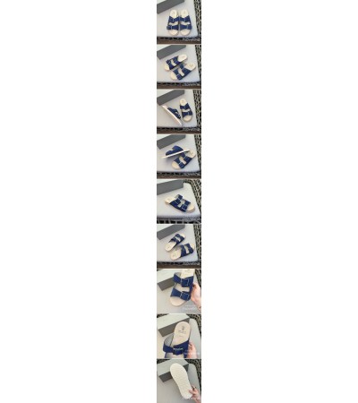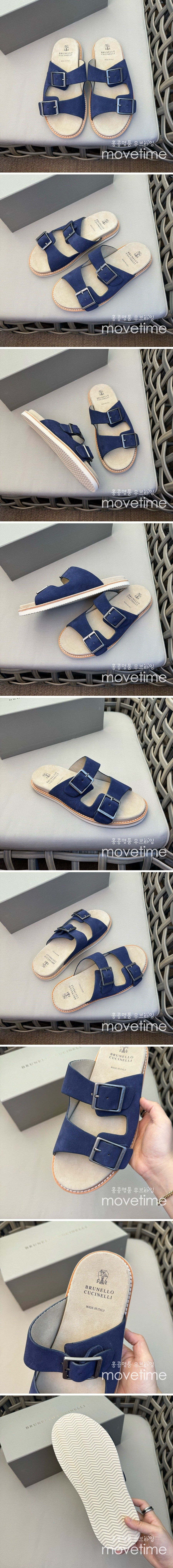 • [홍콩명품.Brunello Cucinelli ] 브루넬로쿠치넬리 24SS 로고 레더 가죽 바겐스탁 슬리퍼 (블루), SE2590, S2, 홍콩명품쇼핑몰,무브타임,악세사리,잡화,생활용품