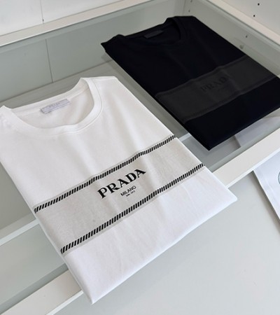 • [홍콩명품,PRADA] 프라다 24SS 로고 스트라이프 프린트 반팔 티셔츠 (2컬러), BM12310, JS, 홍콩명품의류,구매대행,온라인명품