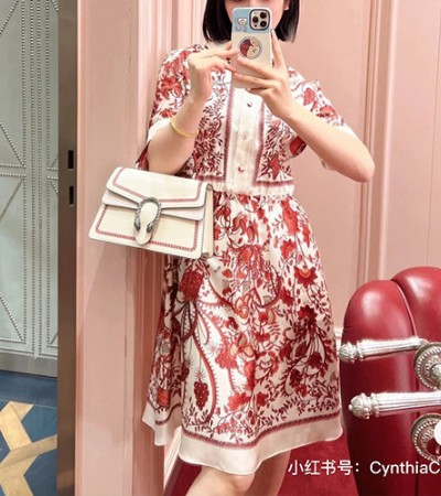 • [홍콩명품.Gucci] 구찌 24SS 로고 패턴 여성 벨티드 실크 원피스, BM12519, TBG, 홍콩명품의류,구매대행,온라인명품