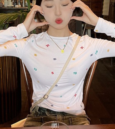 • [홍콩명품.CHANEL] 샤넬 24SS 로고 여성 슬림핏 긴팔 티셔츠 (화이트), BM12806, TBG, 홍콩명품의류,구매대행,온라인명품