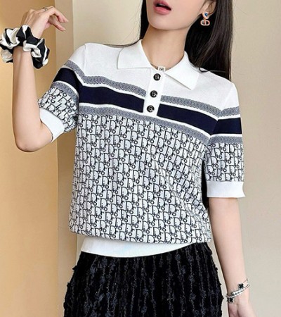 • [홍콩명품,Christian Dior] 디올 24SS 로고 여성 오블리크 카라 니트 반팔 티셔츠 (2컬러), BM12811, TBG, 홍콩명품의류,구매대행,온라인명품