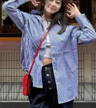 [홍콩명품,MIU MIU] 미우미우 24SS 로고 자수 여성 체크 패턴 남방 셔츠 (블루), BM12895, TBG, 홍콩명품의류,구매대행,온라인명품 요약정보 및 구매