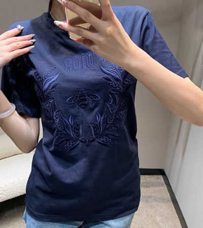 [홍콩명품,Christian Dior] 디올 24SS 로고 패턴 자수 여성 반팔 티셔츠 (네이비), BM12898, TBG, 홍콩명품의류,구매대행,온라인명품 > 여성몰