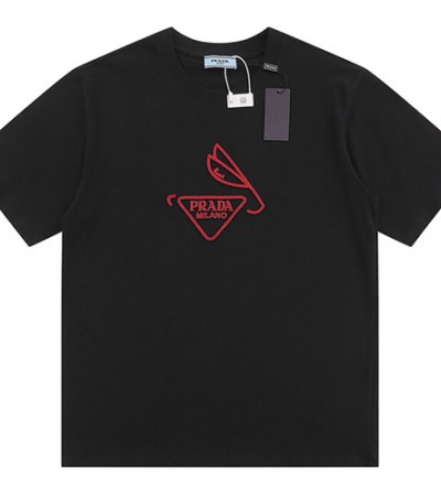 • [홍콩명품,PRADA] 프라다 24SS 로고 자수 프린트 반팔 티셔츠 (2컬러), BM12950, S1F, 홍콩명품의류,구매대행,온라인명품