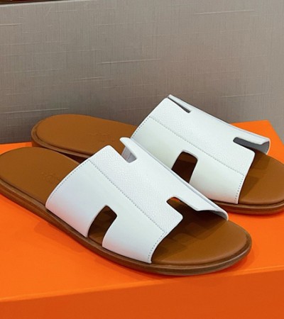 [홍콩명품.Hermes] 에르메스 24SS 로고 그래픽 레더 가죽 슬리퍼 이즈미르 (화이트), SE2762, S6, 명품스니커즈,운동화,구두,로퍼,하이탑,신발 > 신발