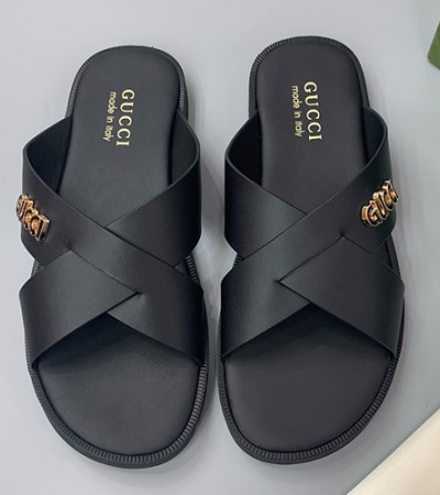 [홍콩명품.Gucci] 구찌 24SS GG 금장 로고 레더 가죽 슬리퍼 (블랙), SE2804, PMD, 명품스니커즈,운동화,구두,로퍼,하이탑,신발 > 신발