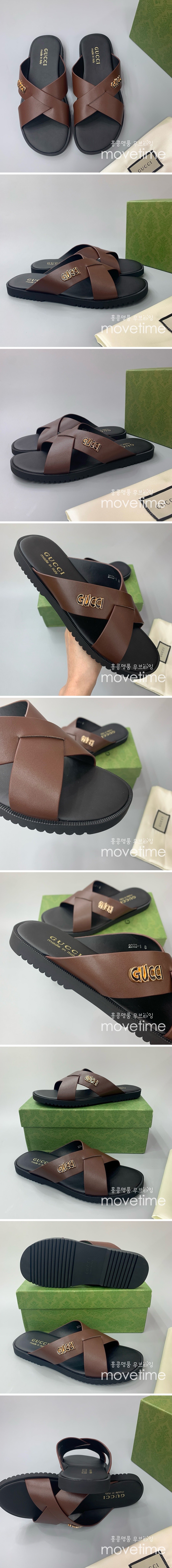 [홍콩명품.Gucci] 구찌 24SS GG 금장 로고 레더 가죽 슬리퍼 (브라운), SE2808, PMD, 명품스니커즈,운동화,구두,로퍼,하이탑,신발 요약정보 및 구매