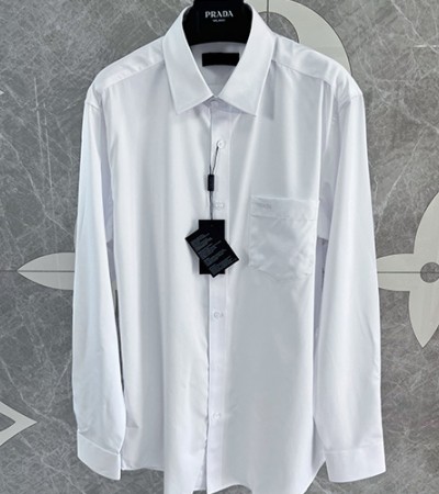 • [홍콩명품,PRADA] 프라다 24SS 로고 자수 포플린 남방 셔츠 (화이트), BM13393, SAM, 홍콩명품의류,구매대행,온라인명품