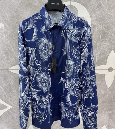 [홍콩명품.VERSACE] 베르사체 24SS 로고 패턴 포플린 남방 셔츠 (블루), BM13396, SAM, 홍콩명품의류,구매대행,온라인명품 > 남자의류