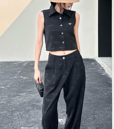 [홍콩명품,PRADA] 프라다 24SS 삼각로고 여성 슬리브리스 셔츠 + 팬츠 바지 상하의 세트 (2컬러), BM13474, TBG, 홍콩명품의류,구매대행,온라인명품 > 여성몰