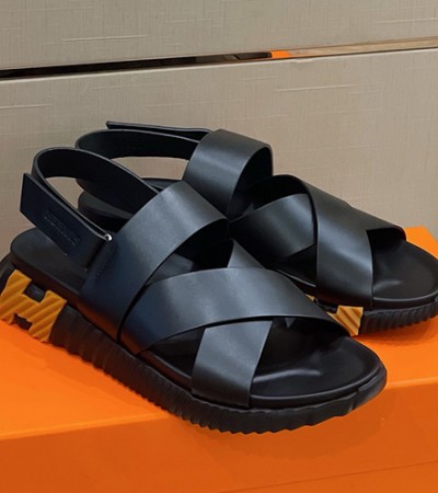 [홍콩명품.Hermes] 에르메스 24SS 로고 레더 가죽 샌들 (블랙), SE2945, S6, 명품스니커즈,운동화,구두,로퍼,하이탑,신발 > 신발