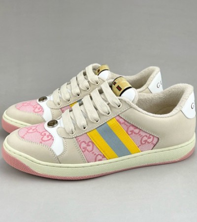 • [홍콩명품.Gucci] 구찌 24SS 로고 여성 GG 스크리너 스니커즈 운동화 (베이지-핑크), SE2987, S3, 명품스니커즈,운동화,구두,로퍼,하이탑,신발