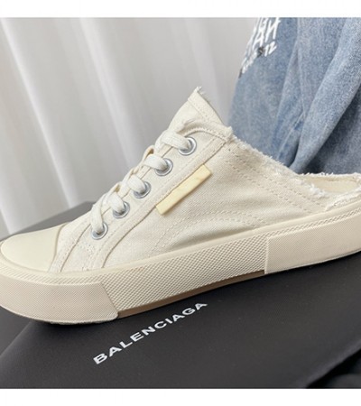 • [홍콩명품.BALENCIAGA] 발렌시아가 24SS 로고 캔버스 뮬 운동화 (화이트), SE3101, S3, 명품스니커즈,운동화,구두,로퍼,하이탑,신발