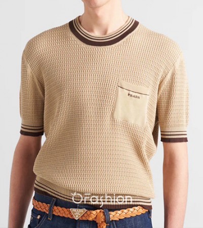 [홍콩명품,PRADA] 프라다 24SS 로고 자수 포켓 반팔 티셔츠 (카라멜), BM13921, JL, 홍콩명품의류,구 매대행,온라인명품 > 남자의류