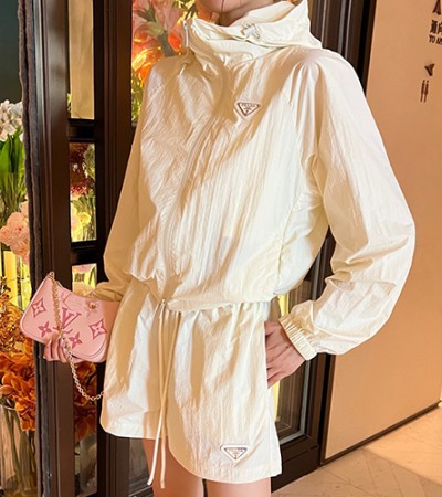 • [홍콩명품,PRADA] 프라다 24SS 삼각로고 여성 후드 바람막이 자켓 + 미니 쇼츠 반바지 상하의 세트 (2컬러), BM14065, TBG, 홍콩명품의류,구 매대행,온라인명품