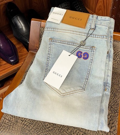[홍콩명품.Gucci] 구찌 24SS 로고 자수 데님 팬츠 진 청바지 (연청), BM14079, S1F, 홍콩명품의류,구 매대행,온라인명품 > 남자의류