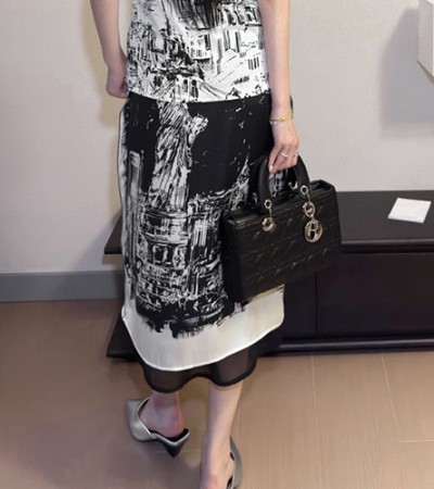 • [홍콩명품,Christian Dior] 디올 24SS 로고 그래픽 프린트 여성 미디 스커트, BM14154, TBG, 홍콩명품의류,구 매대행,온라인명품