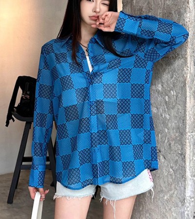 [홍콩명품.LOUIS VUITTON] 루이비통 24SS 로고 다미에 여성 남방 셔츠 (블루), BM14239, TBG, 홍콩명품의류,구매대행,온라인명품 > 여성몰