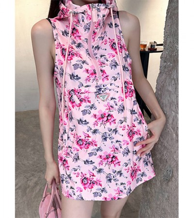 • [홍콩명품,PRADA] 프라다 24SS 삼각로고 여성 슬리브리스 후드 원피스 (핑크), BM14244, TBG, 홍콩명품의류,구매대행,온라인명품