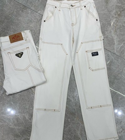 • [홍콩명품,PRADA] 프라다 24SS 삼각로고 여성 데님 팬츠 진 청바지 (화이트), BM14310, TBG, 홍콩명품의류,구매대행,온라인명품