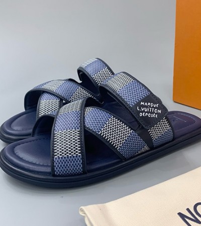 [홍콩명품.LOUIS VUITTON] 루이비통 24SS 로고 다미에 레더 가죽 샌들 슬리퍼 (네이비), SE3178, PMD, 명품스니커즈,운동화,구두,로퍼,하이탑,신발 > 신발