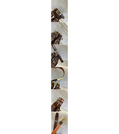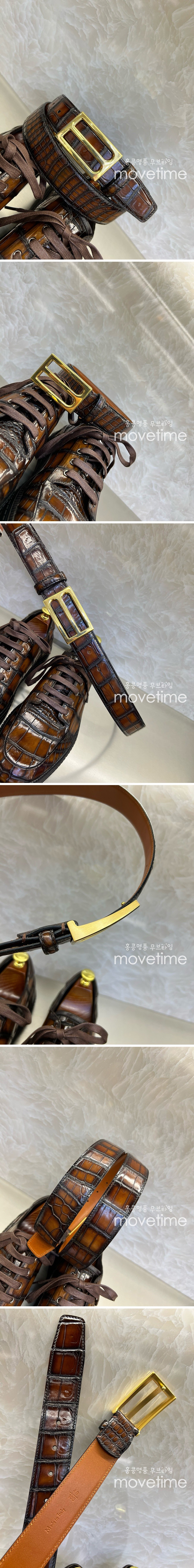 • [홍콩명품.BERLUTI] 벨루티 23SS 로고 베네치아 스크리토 레더 악어가죽 벨트 (브라운), BT1199, 3.5cm, BLB, 명품레플리카,인터넷쇼핑몰,남자명품,해외직구