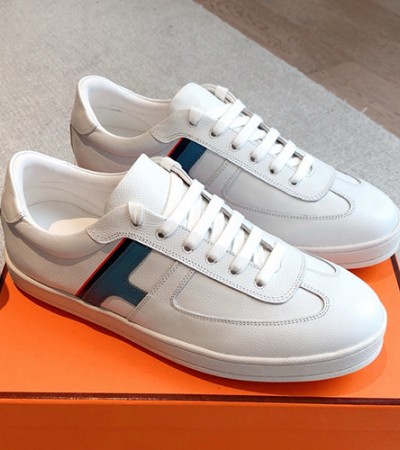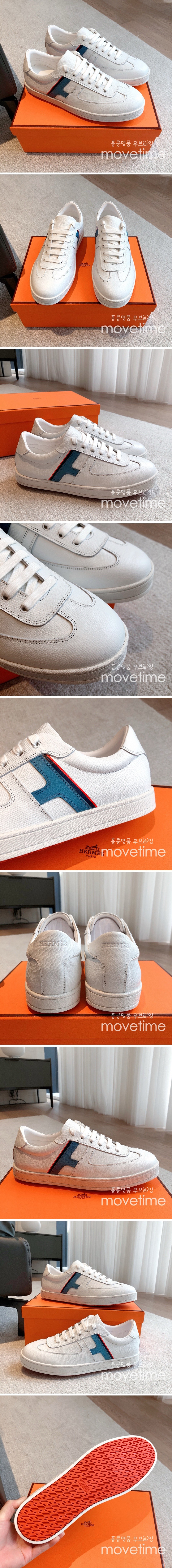 • [홍콩명품.Hermes] 에르메스 23SS 로고 레더 가죽 스니커즈 운동화 (화이트-블루), SE3245, S3, 명품스니커즈,운동화,구두,로퍼,하이탑,신발
