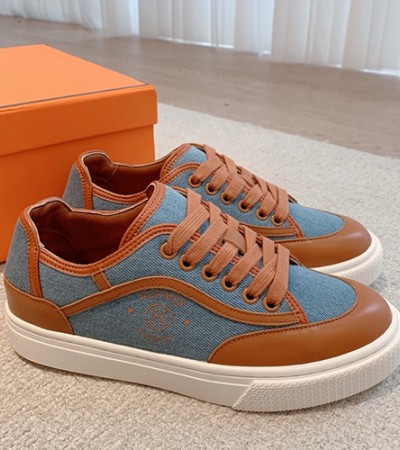 [홍콩명품.Hermes] 에르메스 23SS 로고 레더 가죽 스니커즈 운동화 (브라운-데님), SE3255, S3, 명품스니커즈,운동화,구두,로퍼,하이탑,신발 > 신발