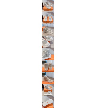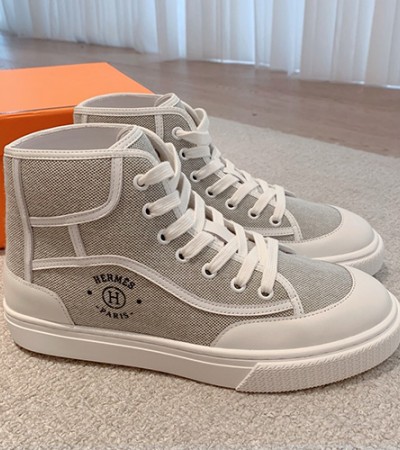 • [홍콩명품.Hermes] 에르메스 23SS 로고 레더 가죽 레이어드 하이탑 스니커즈 운동화 (그레이-화이트), SE3265, S3, 명품스니커즈,운동화,구두,로퍼,하이탑,신발