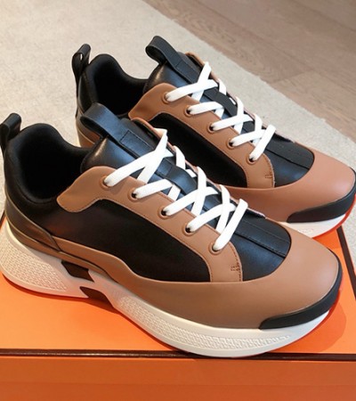 [홍콩명품.Hermes] 에르메스 23SS 로고 레더 가죽 스니커즈 운동화 (블랙-브라운), SE3267, S3, 명품스니커즈,운동화,구두,로퍼,하이탑,신발 > 신발