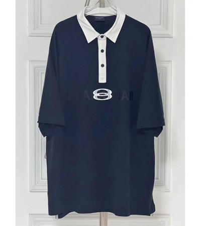 • [홍콩명품.BALENCIAGA] 발렌시아가 24SS 로고 오버사이즈 반팔 티셔츠 (네이비), BM14357, X2, 홍콩명품의류,구매대행,온라인명품