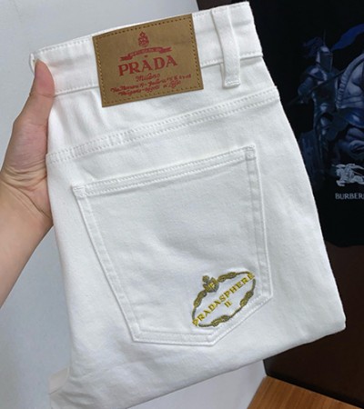 [홍콩명품,PRADA] 프라다 24SS 로고 자수 데님 팬츠 진 청바지 (화이트), BM14457, JS, 홍콩명품의류,구매대행,온라인명품 > 남자의류
